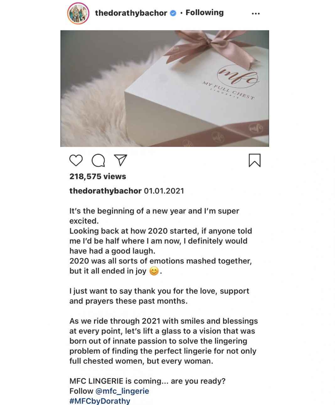 Dorathy Bachor, the first runner-up of Big Brother Naija season 5 is about to start her own lingerie collection soon.