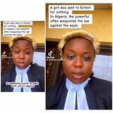 In a video posted online, the lawyer, who uses the TikTok handle @celebrity_lawyer1i, said the woman was arrested and arraigned before a magistrate court on a charge of “grievous bodily harm.”