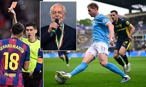 His second proposal would see the removal of yellow and red cards, replacing them with a system similar to rugby’s sin-bin. Under this model, players would be sent off for five minutes for lesser offences and 20 minutes for more serious ones.