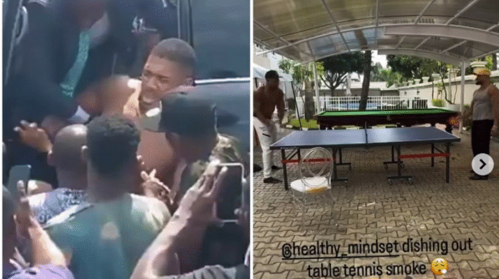 In the video, Anthony Joshua is seen playing tennis with a friend at his family residence in Ogun State, appearing relaxed and in high